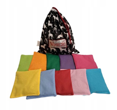 ZESTAW ZAWIERA 10 sztuk woreczków gimnastyczno-sensorycznych zapakowanych w wygodnym worku.który dodajemy GRATIS do każdego zamówienia