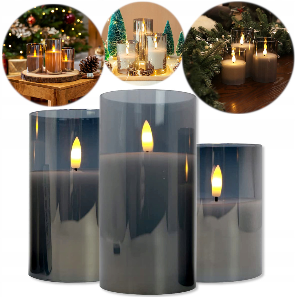 W ZESTAWIE ZNAJDUJĄ SIĘ 3 SZTUKI ŚWIEC O WYSOKOŚCI: