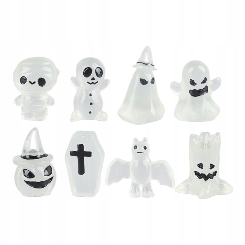 8 sztuk ozdoby na Halloween miniaturowe świecące nagrobek czaszka dyni duch wystrój ogroduOzdoby na Halloween Materiał: Żywica Specyfikacja: 8 szt. Waga: Około. 45 g/1,6 uncji 1, [Śliczne figurki duchów] Ten zestaw ozdób na Halloween zawiera 8 różnych kształtów duchów, w tym nagrobek, dynię, czaszkę, mini i urocze. 2. [Świetna atmosfera] Te miniaturowe ozdoby w formie duchów świecą w ciemności, tworząc mrożącą krew w żyłach atmosferę i sprawiając, że Halloween będzie niezapomniane. 3, [uniwersalny] te ozdoby nie tylko dodają ciekawe elementy do twojego ogrodu, ale także wnoszą kreatywność do dekoracji domu. 4, [wykonane z żywicy]: te ozdoby na Halloween, wykonane z najwyższej jakości żywicy, są trwałe, dzięki czemu możesz cieszyć się nimi przez długi czas. 5, [wielokrotnego użytku] Te dekoracje duchy nadają się do dekoracji na Halloween, przyjęć, nawiedzonych domów itp. w celu dodania atmosfery. 8 x ozdoby na Halloween