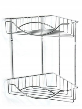 Podwójna rogowa półka ścienna wykonana z drutu chromowanego o wymiarach 31x31,5x20cm