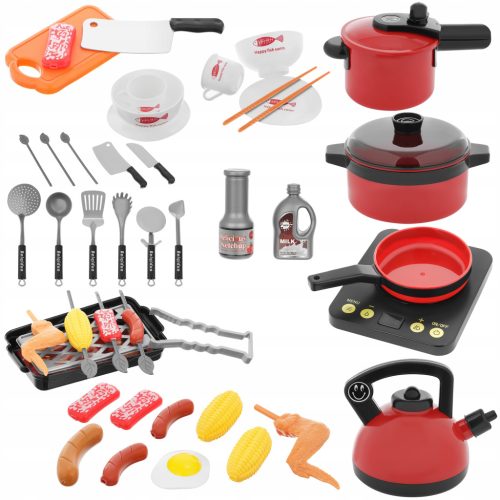 Zestaw czerwonych garnków umożliwia interesującą zabawę w dom, bar, restaurację a maluch poczuje się jak prawdziwy szef kuchni.