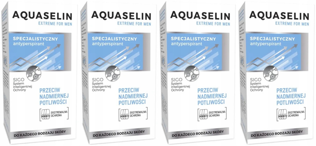 Aquaselin Extreme zapewnia ekstremalną ochronę przeciw nadmiernemu poceniu. Wskazany dla mężczyzn, dla których typowe dezodoranty okazały się nieskuteczne.