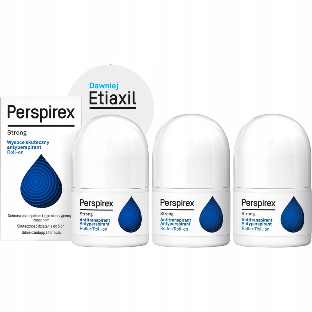 Antyperspirant PERSPIREX (dawniej Etiaxil) Strong Roll-on ochrona przed potem 3 x 20ml. Wysoce skuteczny antyperspirant dla długotrwałej ochrony przed potem i przykrym zapachem.