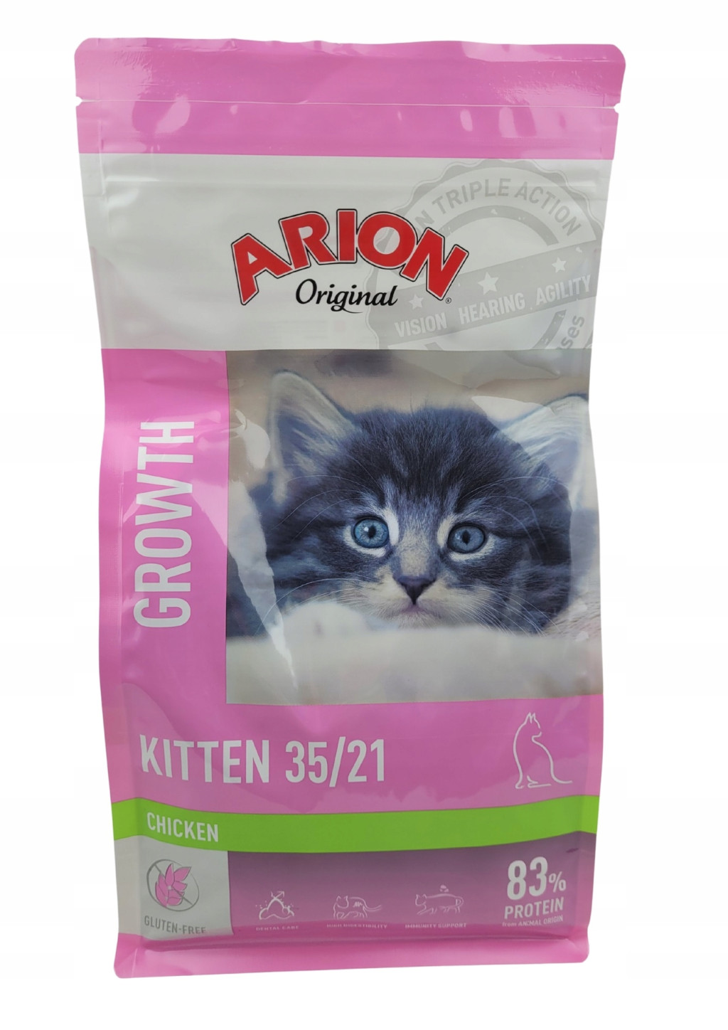 ARION Original Kitten 35/21 została starannie opracowana, aby wspomagać zdrowy rozwój układu trawiennego i odpornościowego Twojego małego kociaka!"