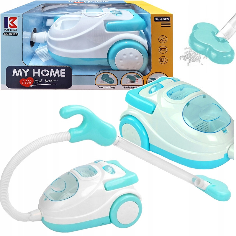 Wykonany z wysokiej jakości plastiku o biało-turkusowej kolorystyce, odkurzacz przypomina prawdziwy sprzęt AGD. Posiada wąż, który dodaje autentycznego charakteru, a diody LED sygnalizujące pracę urządzenia wzbudzają jeszcze większe zainteresowanie. Rączka do przenoszenia sprawia, że dziecko może swobodnie poruszać się po domu, odkurzając śmieci i przygotowując przestrzeń do dalszej zabawy.
