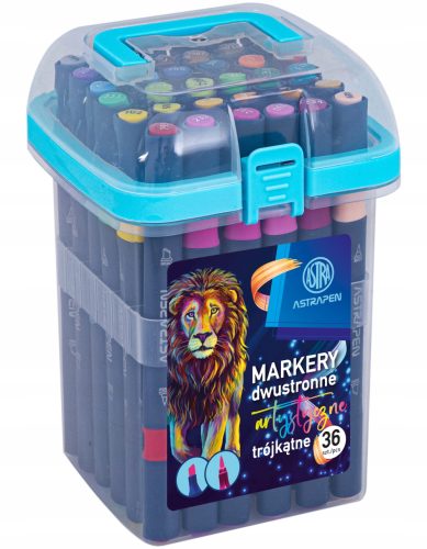 Markery artystyczne trójkątne dwustronne ASTRAPEN to niezastąpione narzędzie dla każdego artysty i kreatywnego entuzjasty. Ten zestaw składa się z 36 markerów, z dwustronną funkcjonalnością. Z jednej strony znajduje się pędzelkowa końcówka, która umożliwia precyzyjne i płynne rysowanie o zmiennej grubości linii. Z drugiej strony znajduje się ścięta końcówka, idealna do linii o stałej szerokości oraz do tworzenia ostrzejszych konturów.
