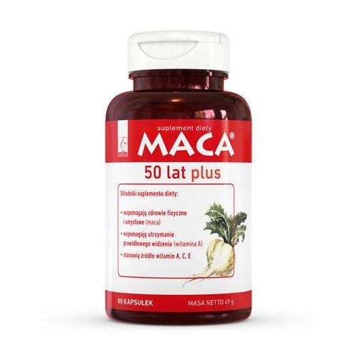 Suplement diety Maca 50 lat Plus łączy walory maki, premiksu witamin A + C + E oraz chrząstki rekina.
