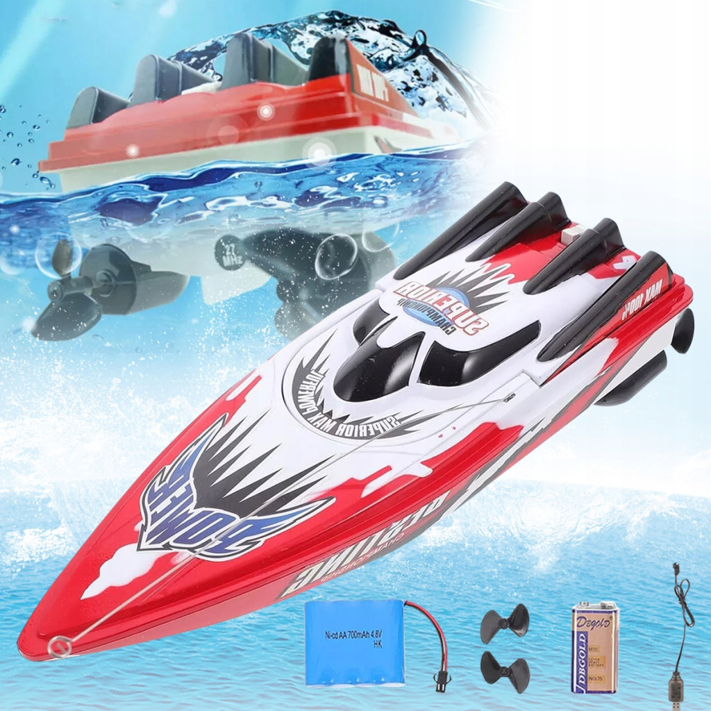 Chyba każde dziecko marzy o wzięciu udziału w zawodach motorowych. Teraz to możliwe, możesz spróbować swoich sił w wodnym sporcie motorowym. Sterowana radiowo łódka potrafi pływać we wszystkich kierunkach, a wygodne prowadzenie zapewnia pilot sterujący.