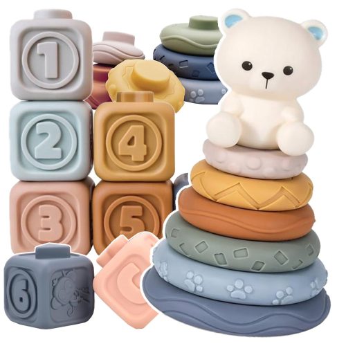 Klocki sensoryczne doskonale sprawdzą się jako gryzaki podczas ząbkowania. Skutecznie wymasują dziąsła i przyniosą ulgę każdemu dziecku i rodzicom.