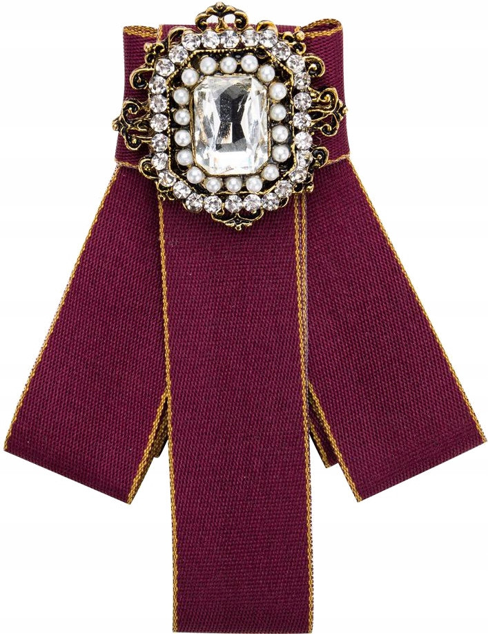 ✔️ Luksusowa broszka/kokarda/przypinka do koszuli wykonana z lekko usztywnianej, matowej tkaniny. Ozdobiona przezroczystym kryształem, szlifowanym i polerowanym, aby nadać jej szlachetny wygląd. Kokarda jest dużych rozmiarów i dzięki starannemu wykonaniu przykuwa wzrok niemal każdej osoby.