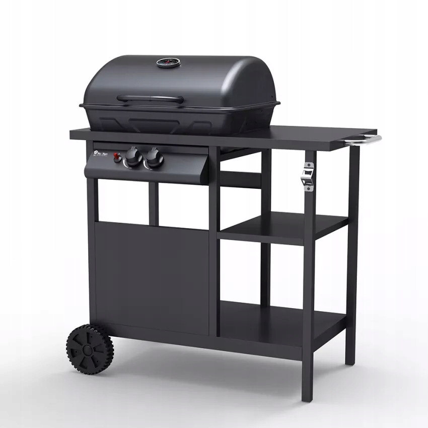 Tak naprawdę jest to idealne urządzenie zarówno dla nowicjuszy, jak i dla tych bardziej doświadczonych. Jest on nie tylko bezpieczny i dobrze zaprojektowany, ale także łatwy w transporcie i montażu: dzięki dwóm bocznym kółkom możesz go łatwo przesuwać w razie potrzeby, postawić na grillu i rozpocząć przygotowywanie fantastycznego królewskiego obiadu! Drzwiczki u dołu ochronią butlę z gazem przed ogniem i zewnętrznymi źródłami ciepła. Ten fantastyczny grill jest wyposażony w solidną stalową pokrywę, odpowiednią do powolnego gotowania i zapewniającą soczystość potraw, a także w dwie praktyczne półki boczne, aby zawsze mieć pod ręką wszystkie niezbędne przybory.