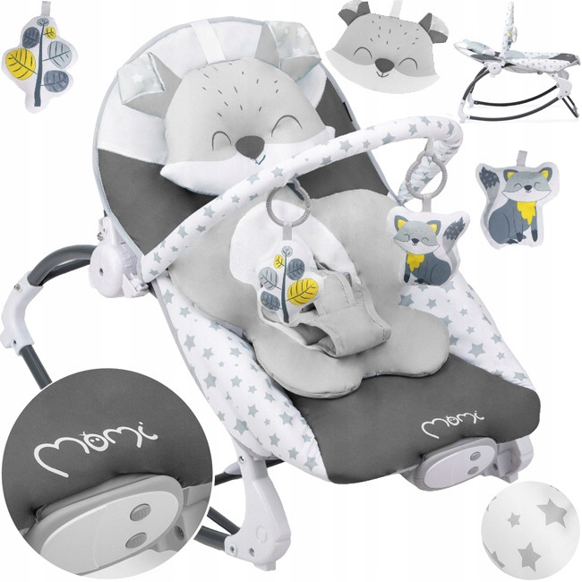 Bujaczek MoMi LUIS posiada atrakcyjne dla Dzieci zabawki, które umilają im czas. Wyposażony jest także moduł sensoryczny, który muzyką i delikatną wibracją wpłynie na rozwój Twojego Maluszka.