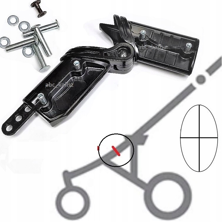Pasuje do modelu wózka Anex Sport oraz innych modeli wózków, które mają zawias czarny i owalną rurkę w stelażu wózka.