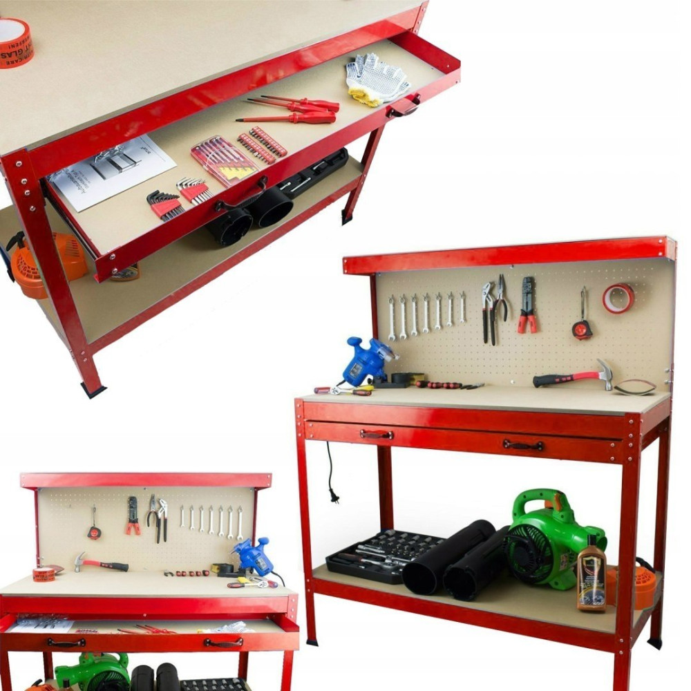 Praktyczny, uniwersalny stół będzie z pewnością dobrym rozwiązaniem dla każdego majsterkowicza. Wyposażony jest w uchwyty na narzędzia oraz w szufladę. Dzięki niemu w łatwy sposób utrzymasz porządek w warsztacie oraz znacznie ułatwisz sobie pracę.