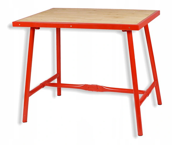 Podstawa ze stabilnych rur stalowych, przymocowana do blatu roboczego mocnymi zawiasami. Blat roboczy z płyty multipleksowej o grubości 30 mm, klejony wodoodpornie, powleczony pokostem lnianym, na całym obwodzie rama z kątowników stalowych. Rozłożenie następuje za pomocą umieszczonych pośrodku, dzielonych napinaczy. Wszystkie części metalowe lakierowane.