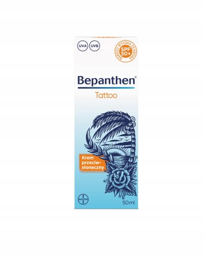 Bepanthen® Tattoo krem przeciwsłoneczny został specjalnie opracowany, by chronić wytatuowaną skórę przed szkodliwym działaniem promieniowania UVA i UVB. Posiada wysoki faktor SPF (SPF 50+).