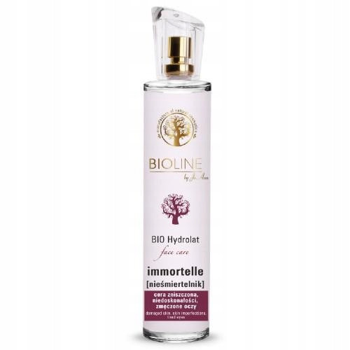 Bio hydrolat z nieśmiertelnika polecany jest do pielęgnacji skóry podrażnionej lub cierpiącej na trądzik różowaty. Posiada doskonałe właściwości kojące w przypadku skóry alergicznej i problemów skórnych takich jak trądzik, egzema, łuszczyca. Minimalizuje blizny potrądzikowe. Poprawia krążenie, ujednolica koloryt cery, w widoczny sposób redukuje cienie pod oczami i zaczerwienienia.