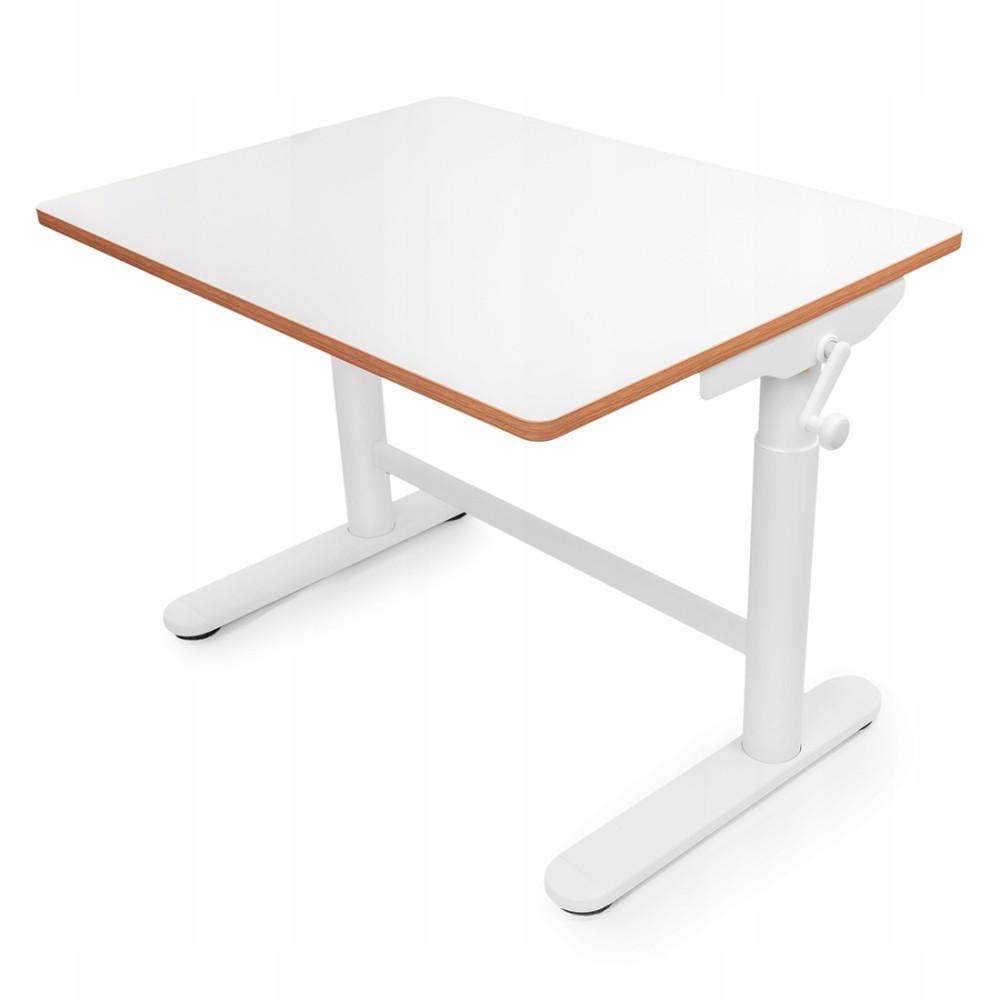 Dzieci mogą łatwo dostosować wysokość biurka do swoich potrzeb, korzystając z lekkiej i płynnej ręcznej korby. Wysokość blatu jest regulowana w zakresie od 49 cm do 70 cm. W praktyce to oznacza, że użytkownikiem biurka może być zarówno sześciolatek, jak i uczeń szkoły podstawowej.