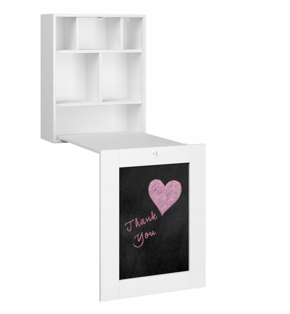 Nowoczesny design biurka TILT zachwyca prostotą i praktycznością. Niezwykle ergonomiczny mebel, który dzięki funkcji składania maksymalizuje wolną przestrzeń w pomieszczeniu. Idealne biurko pod laptopa lub do nauki, z duża liczbą półek na drobiazgi. W czasie złożenia jest zabezpieczone zamknięciem na kluczyk. Można używać go także jako tablicy, ze względu na możliwość rysowania / pisania po niej kredą!!