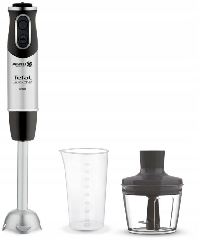 Dzięki blenderowi ręcznemu Quickchef marki Tefal możesz cieszyć się optymalną mocą bez żadnego wysiłku. Z łatwością przygotujesz różne potrawy w krótkim czasie dzięki wysokowydajnemu silnikowi o mocy 1000 W i zachowasz całkowitą kontrolę dzięki 20 intuicyjnym ustawieniom prędkości. Odporna na zachlapanie osłona i antypoślizgowy uchwyt zapewniają wygodę użytkowania, tymczasem wyjmowane części, które można myć w zmywarce ułatwiają czyszczenie. Całość uzupełnia pojemnik o pojemności 800 ml i rozdrabniacz o pojemności 500 ml, umożliwiający wygodne siekanie przeróżnych składników.