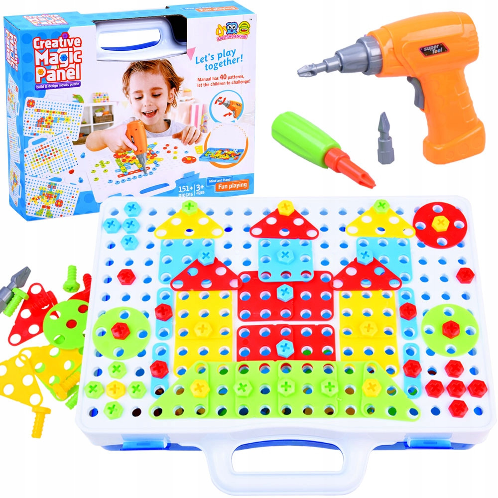 Kreatywne, wieloczęściowe klocki dla młodych konstruktorów.Rewelacyjny 151 elementowy zestaw pozwoli każdemu zbudować niesamowite obrazki. Potrzebna jest chęć, zapał i wyobraźnia bez ograniczeń.