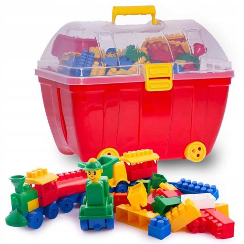 Każdy pojemnik posiada kółka, dzięki czemu przemieszczanie się z zabawkami jest niezwykle proste! Dodatkowo posiada przeźroczystą pokrywę, aby wiedzieć co znajduje się w środku oraz wygodną rączkę do przenoszenia kuferka. Same pojemniki występują w pięknych kolorach: czerwonym oraz niebieskim.