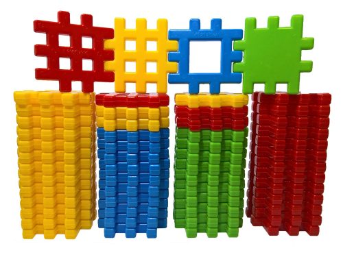 56 klocków waży ok. 1 kg. W tej ofercie tylko podstawowe klocki - kwadraty 10,5 x 10,5 cm