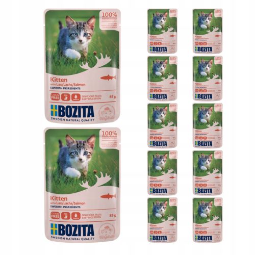 Bozita Kitten Salmon to kompletna karma dla kociąt i młodych kotów, kotek w ciąży oraz karmiących. Zawiera pełnowartościowe kwasy tłuszczowe z łososia, które są m.in ważne dla rozwoju i funkcjonowania mózgu i wzrok u kociąt. Jednoporcjowe saszetki to pyszna, bezzbożowa pełnoporcjowa karma, zawierająca niezbędne witaminy i minerały, których potrzebuje Twój kot. Wszystkie składniki są naturalne, świeże i pochodzą ze szwedzkiej wsi i naturalnej przyrody. Współpracujemy ze szwedzkimi farmami i wybieramy tylko najwyższej jakości surowce.