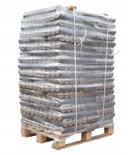 Pakowany po około 6 kg (5 wałków brykietu w zgrzewce)