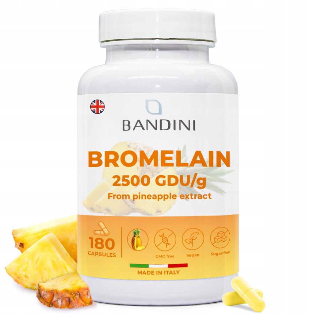 SPOSÓB UŻYCIA. Pozytywny efekt uzyskuje się przyjmując 2 kapsułki dziennie wraz z wodą. Każde opakowanie zawiera 180 kapsułek na okres 2 miesięcy. Zaleca się przyjmowanie 2 kapsułek dziennie z dużą ilością wody na pełny żołądek, aby wspomóc funkcje trawienne lub na pusty żołądek, aby wspomóc drenaż. Wysoce skoncentrowana formuła naszej bromelainy pozwala przyjmować 1 kapsułkę dziennie, co zapewnia 500 mg bromelainy.