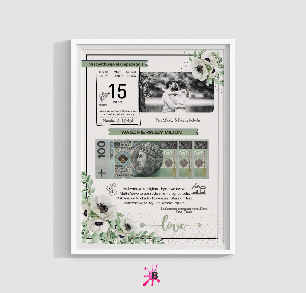 Dodatkowo na każdej grafice znajdzie się PRAWDZIWE ZDJĘCIE KONKRETNEJ PARY MŁODEJ (które po zakupie do nas doślecie) + indywidualne życzenia /cytat/ przekaz !