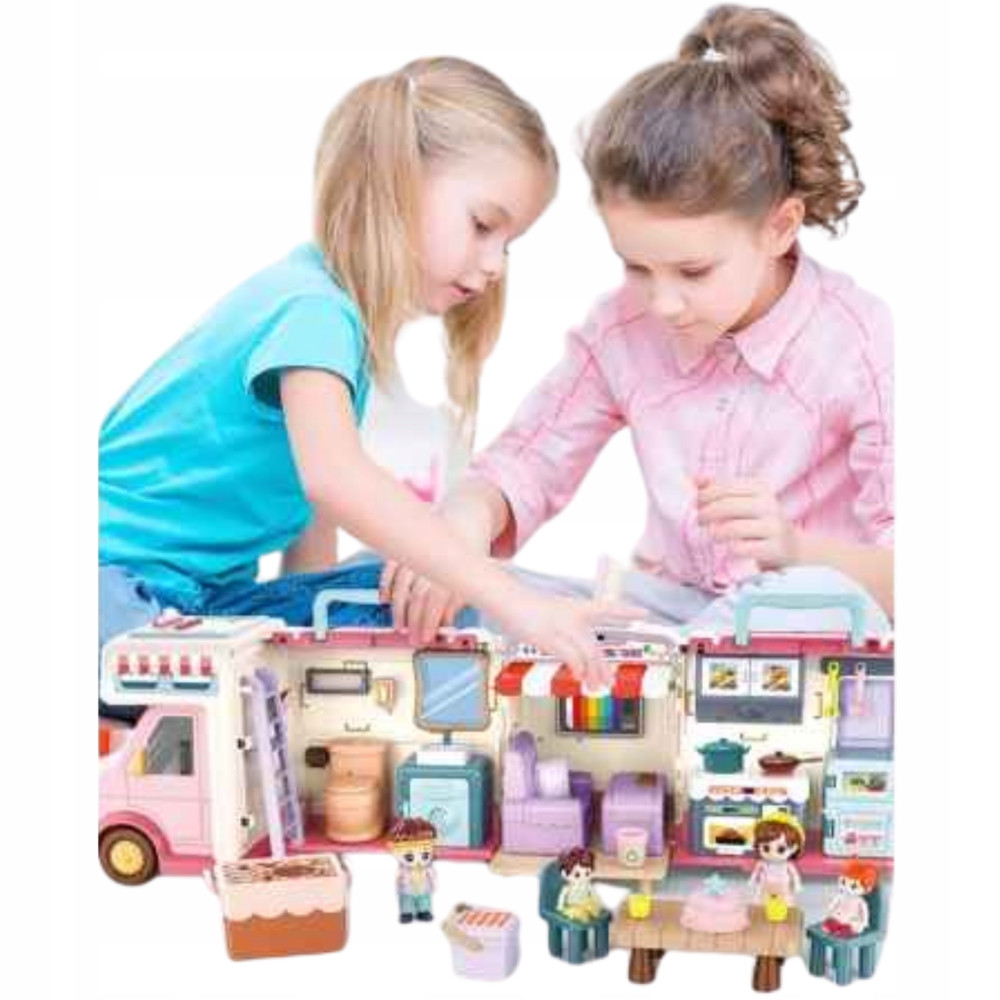 Głównym elementem zestawu jest kamper, który można rozkładać, ukazując bogatą przestrzeń do zabawy. Dzieci po otwarciu kampera zobaczą niesamowite wnętrze. W kamperze mieści się kuchnia, pokój wypoczynkowy i łazienka. Pomieszczenia wyposażone są we wszystkie potrzebne meble i akcesoria.