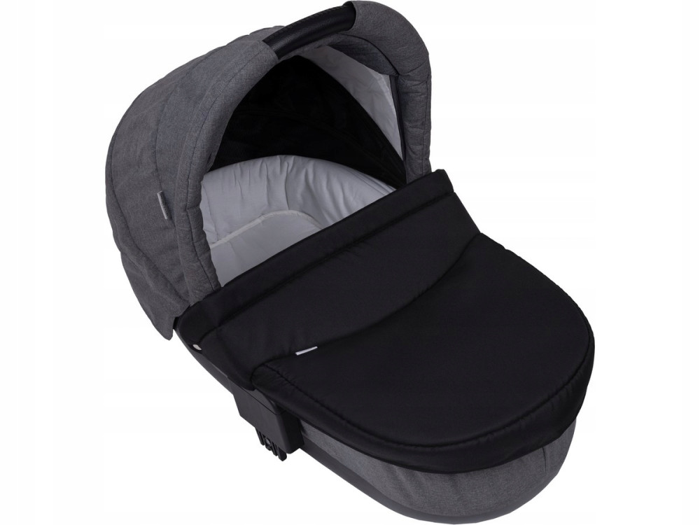 Uniwersalny pokrowiec wykonany jest z impregnowanego materiału wykorzystywanego do produkcji wózków dziecięcych, w środku wypełniony pianką która nadaje sztywność, dzięki niej pokrowiec idealnie dopasowuje się do każdej gondoli, spód wykończony czarną podszewką