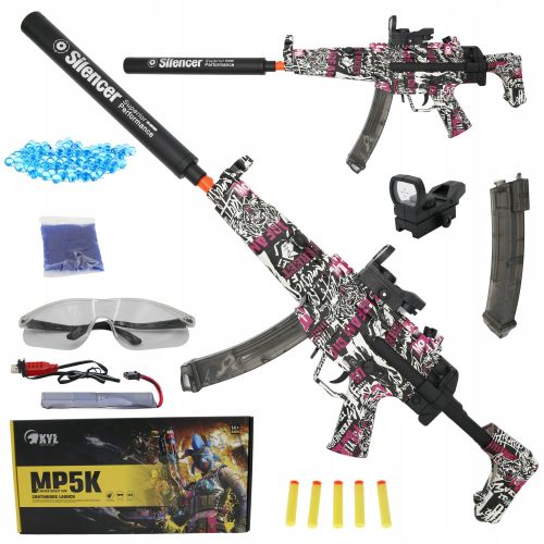 Pistolet MP5 wielokolorowy z akumulatorem na kulki żelowe.