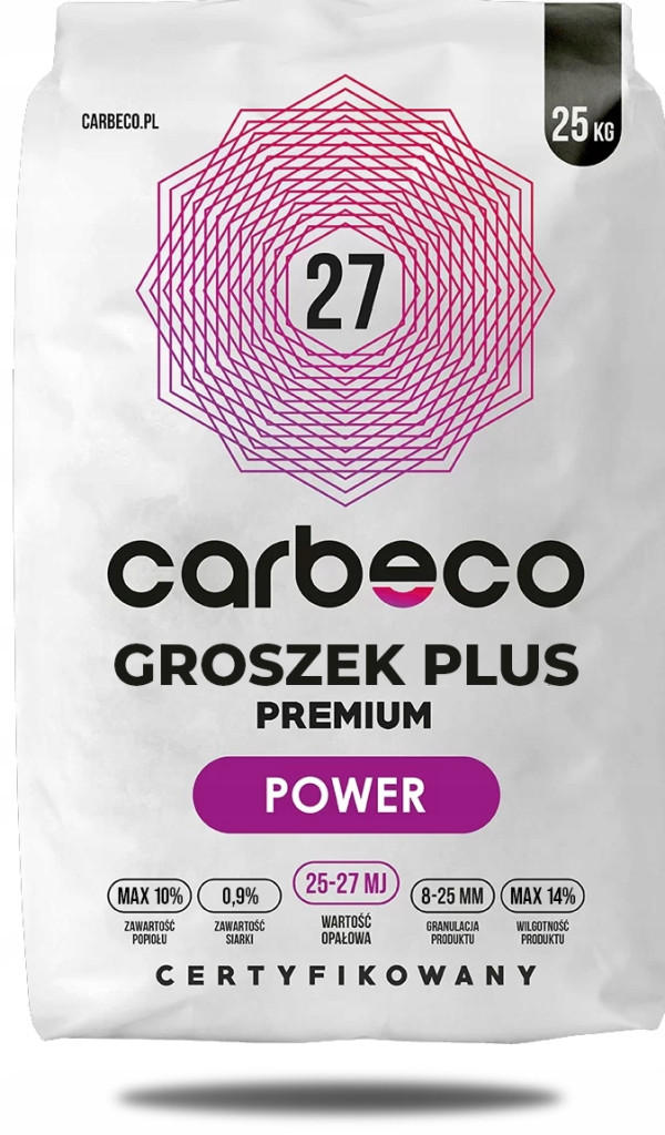 Groszek plus CARBECO Premium POWER – wysokokaloryczny węgiel w workach. Cechuje go wyjątkowa kaloryczność 25 MJ/kg, niska wilgotność oraz niewielka zawartości siarki i popiołu. CARBECO groszek plus POWER dominuje w średniej półce cenowej, zapewniając niesamowity stosunek ceny do jakości. Zważywszy na to, że oferujmy groszek z darmową dostawą, można nawet przyjąć, że jest to tani groszek w jakości premium.