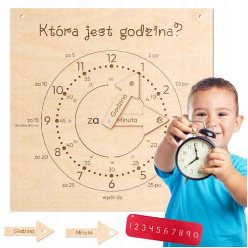 ⭐ Służy do nauki godzin i minut, pomagając dzieciom zrozumieć podstawowe zasady działania zegara.