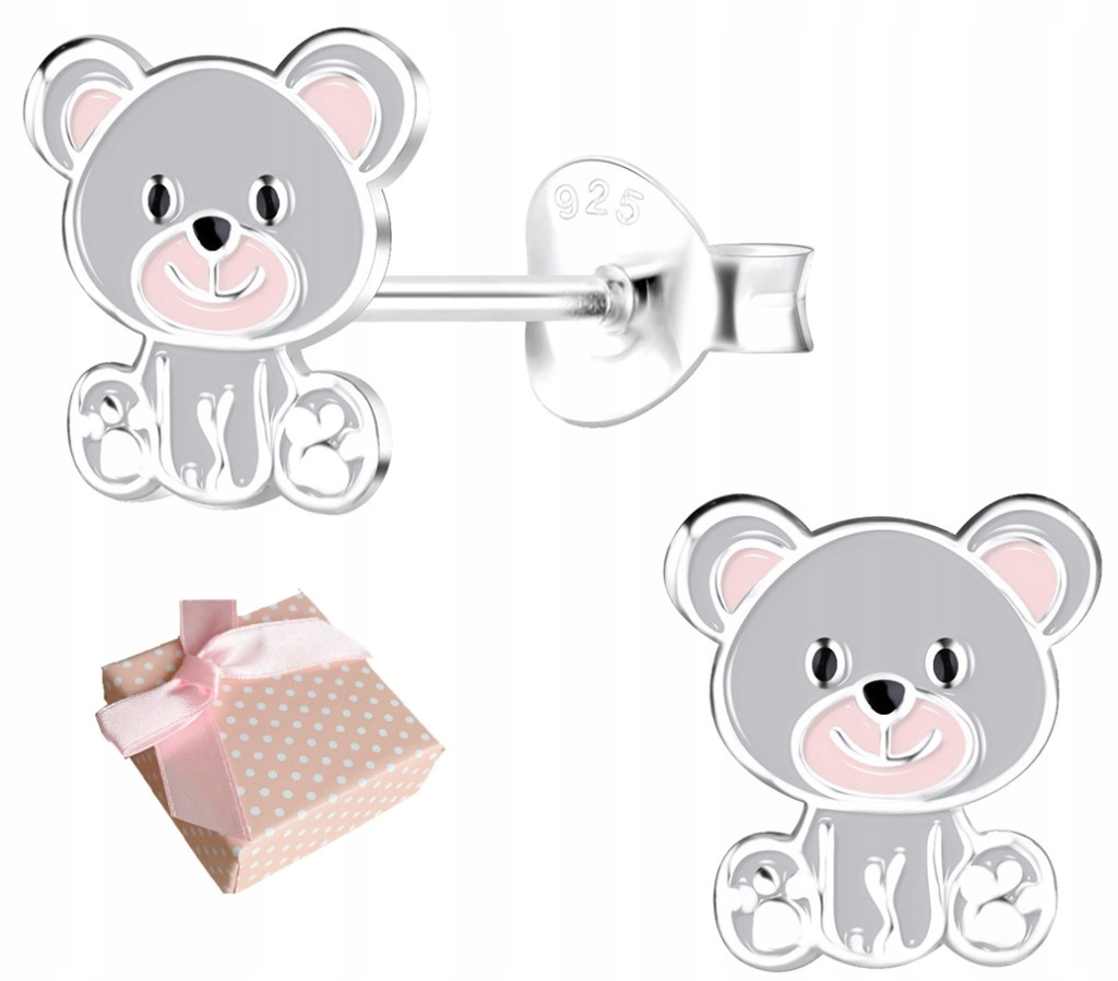✅ Miś w kolorze różowo-szarym. Waga 0,55 g, rozmiar 7 mm x 8 mm.
