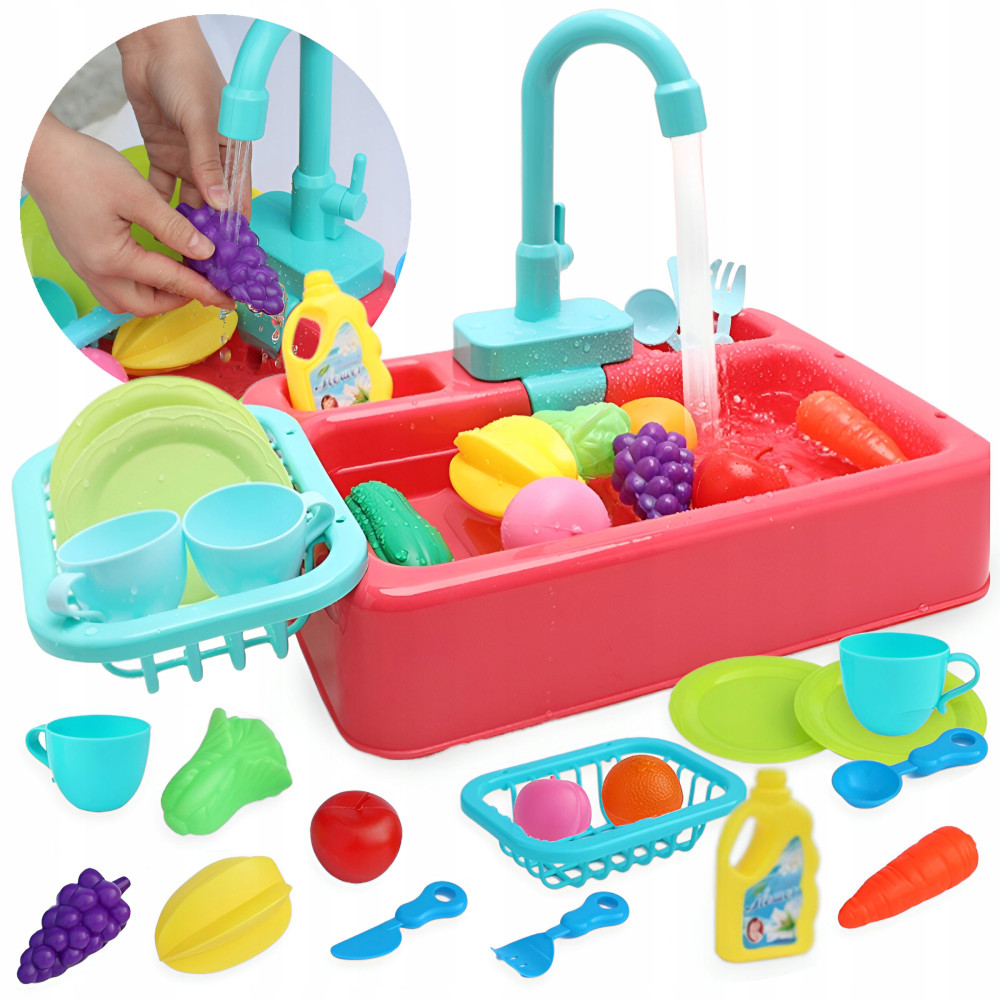 ❇️Zestaw akcesoriów: W zestawie znajdziesz nie tylko sam zlew, ale także bogaty zestaw akcesoriów, takich jak koszyk-suszarka na naczynia, widelec, kubeczki, talerze, butelka płynu do naczyń oraz kolorowe owoce i warzywa????????????