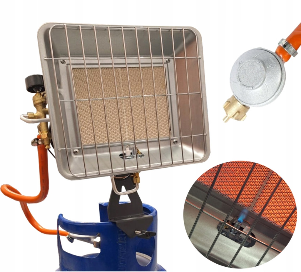 ➡️ Promienniki instaluje się bezpośrednio do kołnierza butli za pomocą uchwytu.