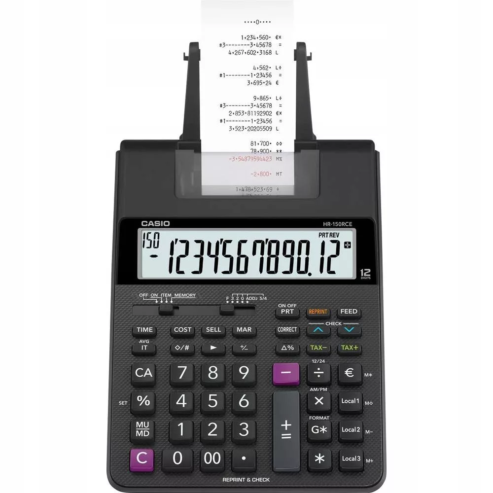 Przejrzysty kalkulator stołowy z funkcją drukowania i wieloma funkcjami obliczeniową.