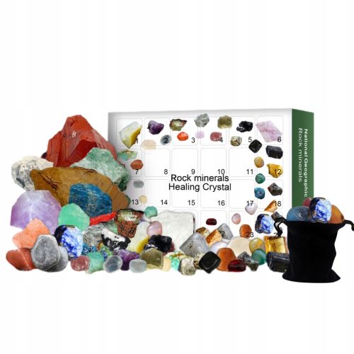 ⭐ Pudełko z niespodzianką: 24-częściowy kryształowy kalendarz adwentowy w pudełku z rudą, który zawiera wiele kryształów, naturalnych rud i szorstkich kamieni, wyrażających szczęście i szczęście.