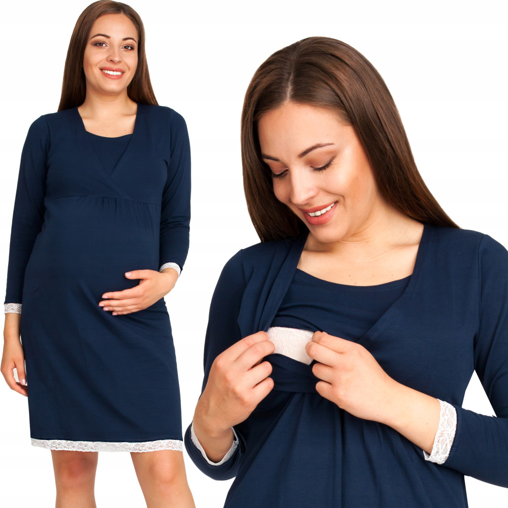 Koszula nocna ciążowa i do karmienia piersią Emi z koronkowym obszyciem.