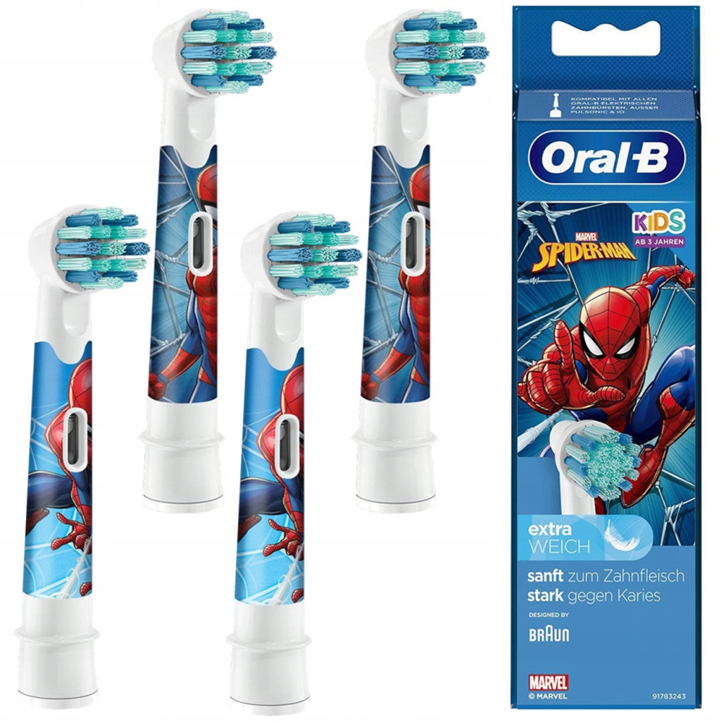 Końcówki wymienne do szczoteczki elektrycznej Oral-B Stages Power z postaciami z bajki Disneya SPIDERMAN są specjalnie przystosowane do dziecięcej buzi, a projekt szczoteczki został zainspirowany profesjonalnymi narzędziami stomatologicznymi. Szczoteczka ma wyjątkowo miękkie włókna i idealny rozmiar dostosowany do dziecięcej buzi i rączki, a postaci z bajki Spiderman sprawią, że dzieci po prostu ją pokochają.