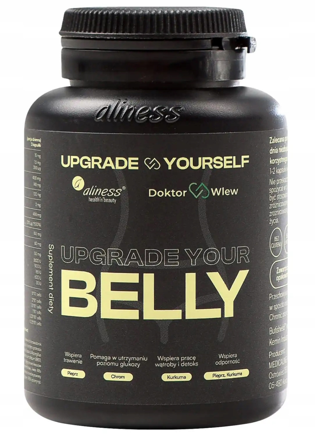 Składniki: Ekstrakt szafranu uprawnego (Crocus sativus) SafraSOL™ standaryzowany na 10% krocyny i 2% safranalu, Kwas masłowy (maślan wapnia) w postaci mikrokapsułek dojelitowych, otoczka mikrokapsułek (kwas stearynowy roślinny), ekstrakt z ostryżu długiego CurQreal® (Curcuma longa, 95% kurkuminy), ekstrakt z czarnego pieprzu ACTAMIDE® (Piper nigrum, 95% piperyny), betaina (chlorowodorek betainy), chrom (chlorek chromu III), kwas Alfa Liponowy (R-ALA), Pepsyna 1:3000 MDP, kompleks enzymów trawiennych w tym: alfa amylaza (z Aspergillus oryzae), neutralna proteaza (z Bacillus licheniformis), celulaza (z Trichoderma reesei), laktaza (z Aspergillus oryzae), lipaza (z Aspergillus oryzae), Bifidobacterium breve BR03, Bifidobacterium animalis lactis BS01, ifidobacterium bifidum BB01, Bifidobacterium infantis BI02, Bifidobacterium longum BL03, otoczka bakterii: estry glicerynowe kwasów tłuszczowych, otoczka kapsułki: (substancja wiążąca: hydroksypropylometyloceluloza).