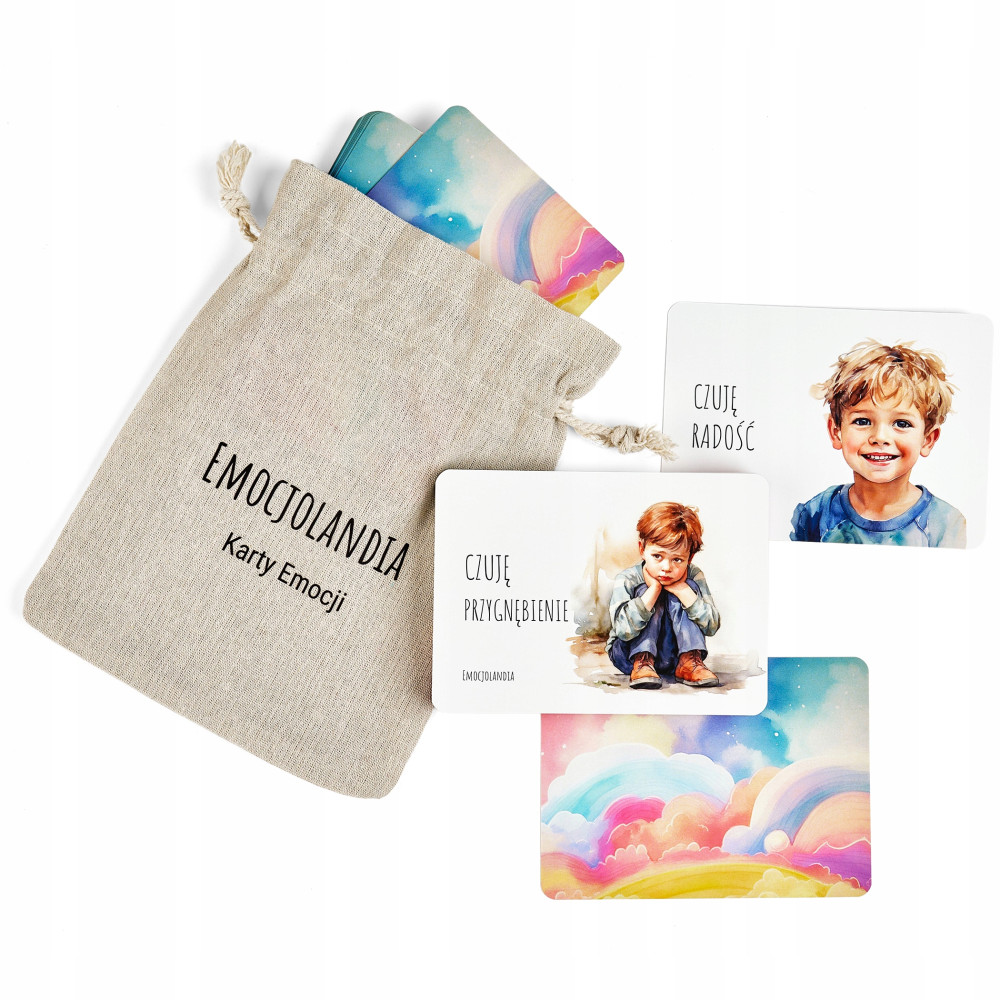 Lepszego Radzenia Sobie z Emocjami: Dzięki kartom dziecko uczy się, jak radzić sobie z trudnymi emocjami, jak smutek, złość czy strach. Skuteczniejszej komunikacji: Karty emocji pomagają dziecku wyrażać swoje uczucia słowami, co może poprawić komunikację między dzieckiem a rodzicami. To umożliwia lepsze zrozumienie potrzeb i emocji dziecka. Wzmacniania Więzi Rodzinnych: Zabawy z Kartami Emocji to doskonała okazja do budowania więzi między rodzicami a dzieckiem, rozmawiania i dzielenia się uczuciami. Budowania Empatii: Praca z kartami emocji zachęca do próby zrozumienia uczuć innych osób. Dziecko może lepiej zrozumieć, dlaczego inni ludzie reagują w określony sposób. Tworzenia Pozytywnych Wspomnień: Zabawy z Kartami Emocji to doskonała okazja do tworzenia pozytywnych wspomnień rodzinnych. To chwile, które rodzice i dzieci mogą spędzić razem, rozmawiając o uczuciach i śmiejąc się razem. Przygotowania Dziecka do Szkoły i Życia Społecznego: Zrozumienie własnych emocji i umiejętność komunikowania się z innymi stanowią ważne umiejętności społeczne. Dzięki naszym kartom emocji dzieci będą lepiej przygotowane do szkoły i życia w społeczeństwie. Rozwijania Kreatywności: Zestaw kart może być używany do tworzenia własnych gier i zabaw, co rozwija kreatywność dziecka i zachęca je do myślenia innowacyjnego.
