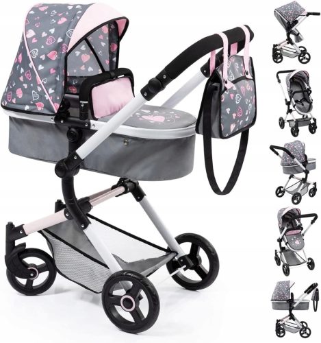Ten śliczny wózek w szaro-różowej kolorystyce.