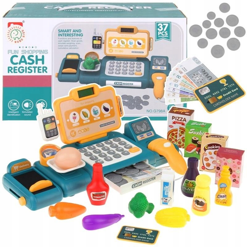 Wspaniała kasa z prawdziwym kalkulatorem, dzięki któremu podczas zabawy możemy nauczyć dziecko cyferek, dodawania, odejmowania, mnożenia i dzielenia.