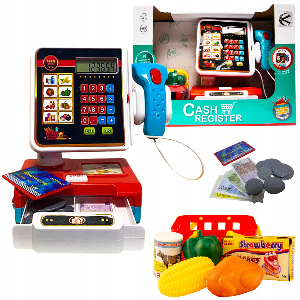 Kasa wyposażona jest w czytnik, który po naciśnięciu przycisku, wydaje charakterystyczny dźwięk, natomiast podczas skanowania, zapala się czerwona lampka imitująca sklepowy skaner, po zeskanowaniu kodu na wyświetlaczu pojawia się cena. Zestaw jest super sposobem na naukę poprzez zabawę - uczy podstawowych działań matematycznych, takich jak: dodawanie, odejmowanie, mnożenie i dzielenie.