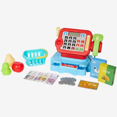 Zeskanuj wszystkie produkty przy użyciu tej kasy. Światło i dźwięk sprawiają, że wydaje się prawdziwa.