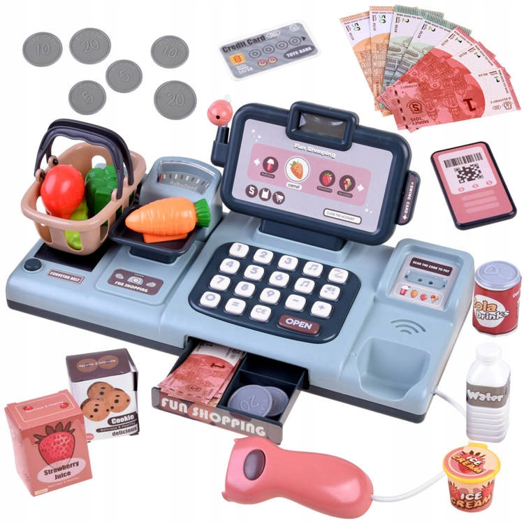To propozycja dla dzieci lubiących zabawę w kupowanie i sprzedaż. Sprawi na pewno mnóstwo radości podczas zabawy. Kasa sklepowa to świetny sposób na przekonanie malucha do nauki liczenia. Dzięki zabawie dziecko uczy się podstaw matematyki oraz przedsiębiorczości.